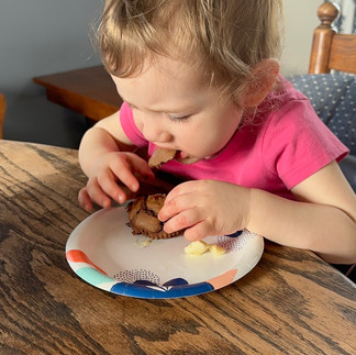 Hi Fam! Soph and I created our first recipe! Sugar Free, Gluten Free, Sourdough Discard Choco Chocoate Chip Muffins! I needed to get rid of some gluten free sourdough discard (I had two jars full) so we did some research and created our own! The muffins passed the taste test of my hardest critic, Soph. She even said "MHHHHHH" multiple times while eating the batter and the muffin! I am trying to create healthier versions of foods so I have been subbing honey for sugar in a lot of my recipes. Our local farmer's market has a stand that we buy majority of our local honey from, and we used their chocolate honey in this recipe. SO YUMMY!